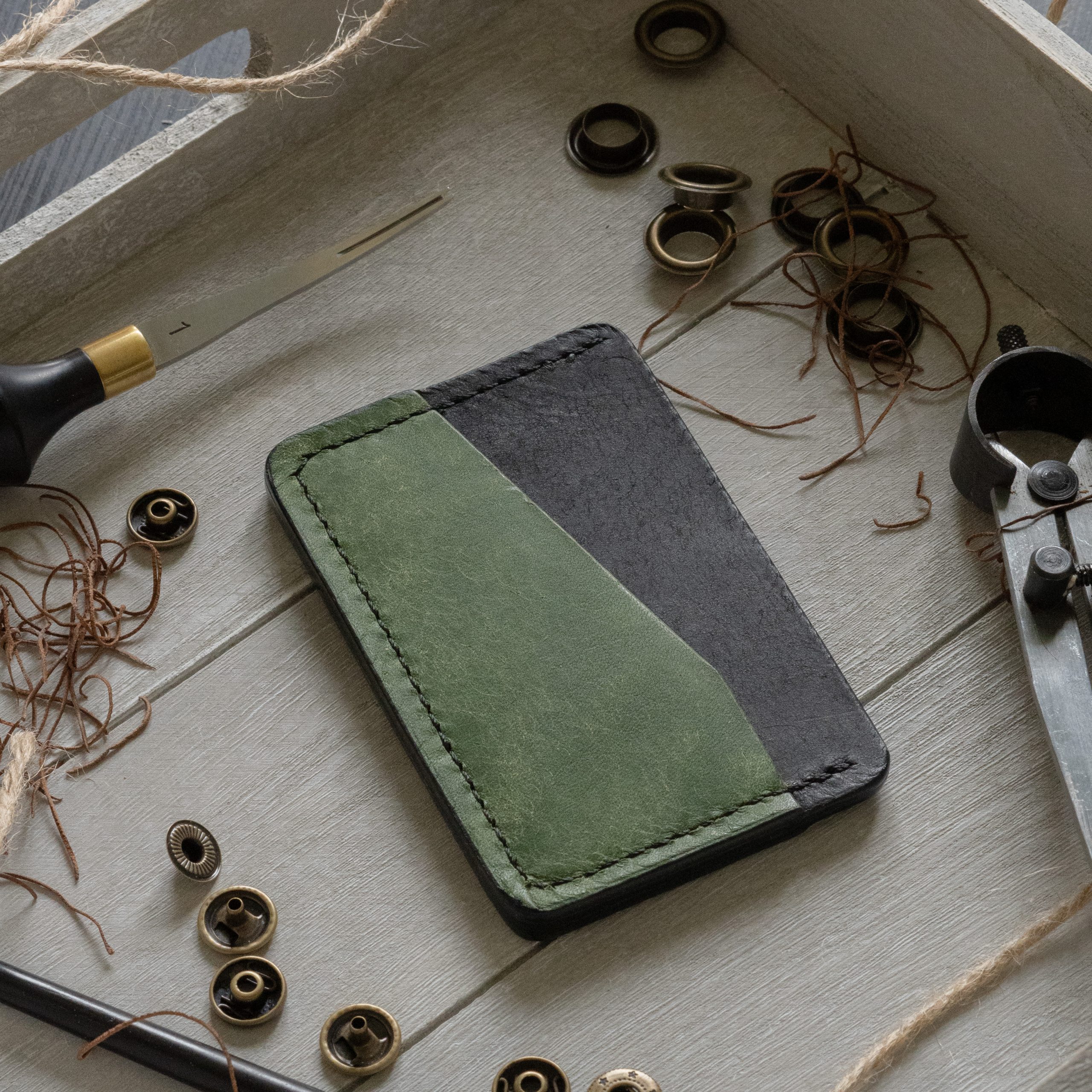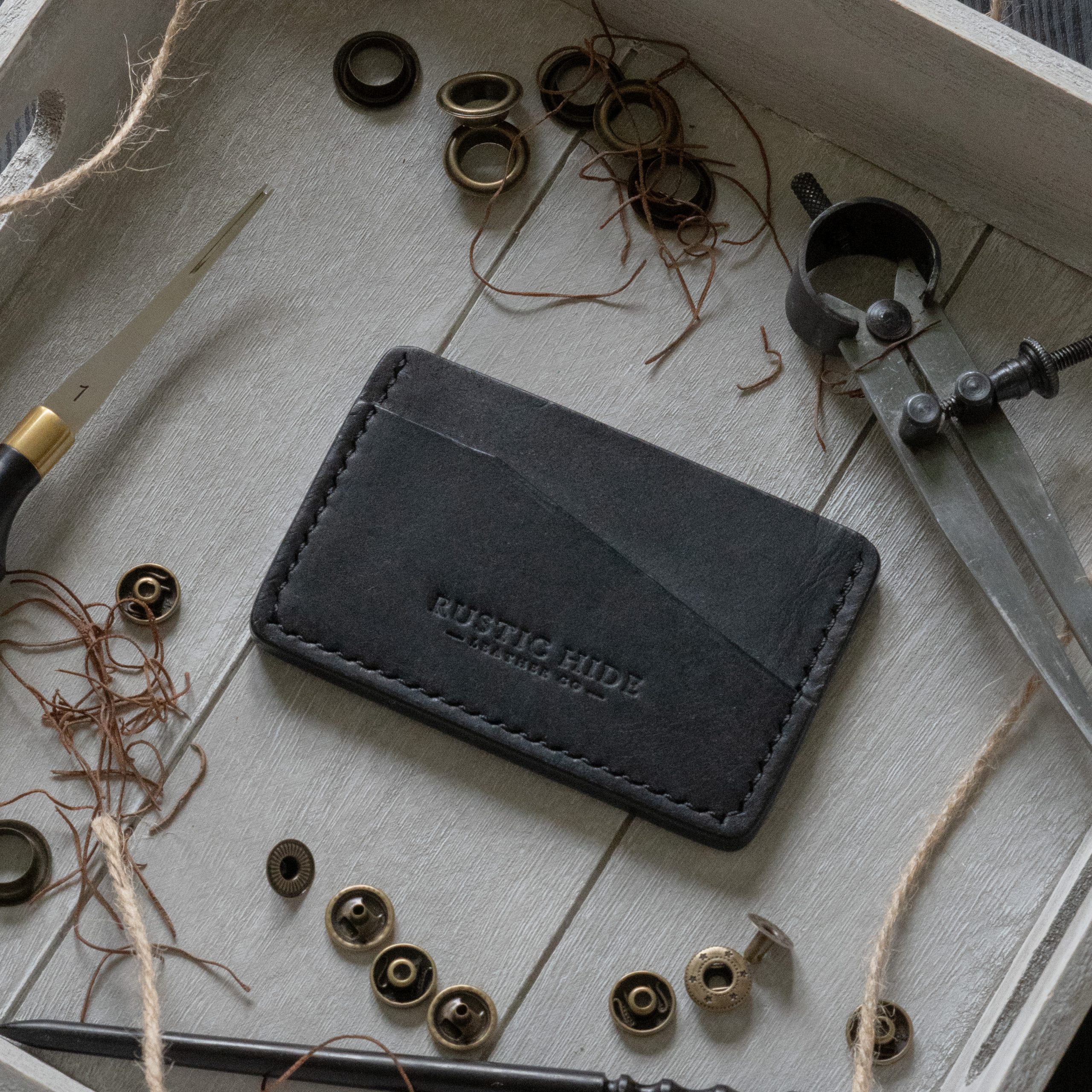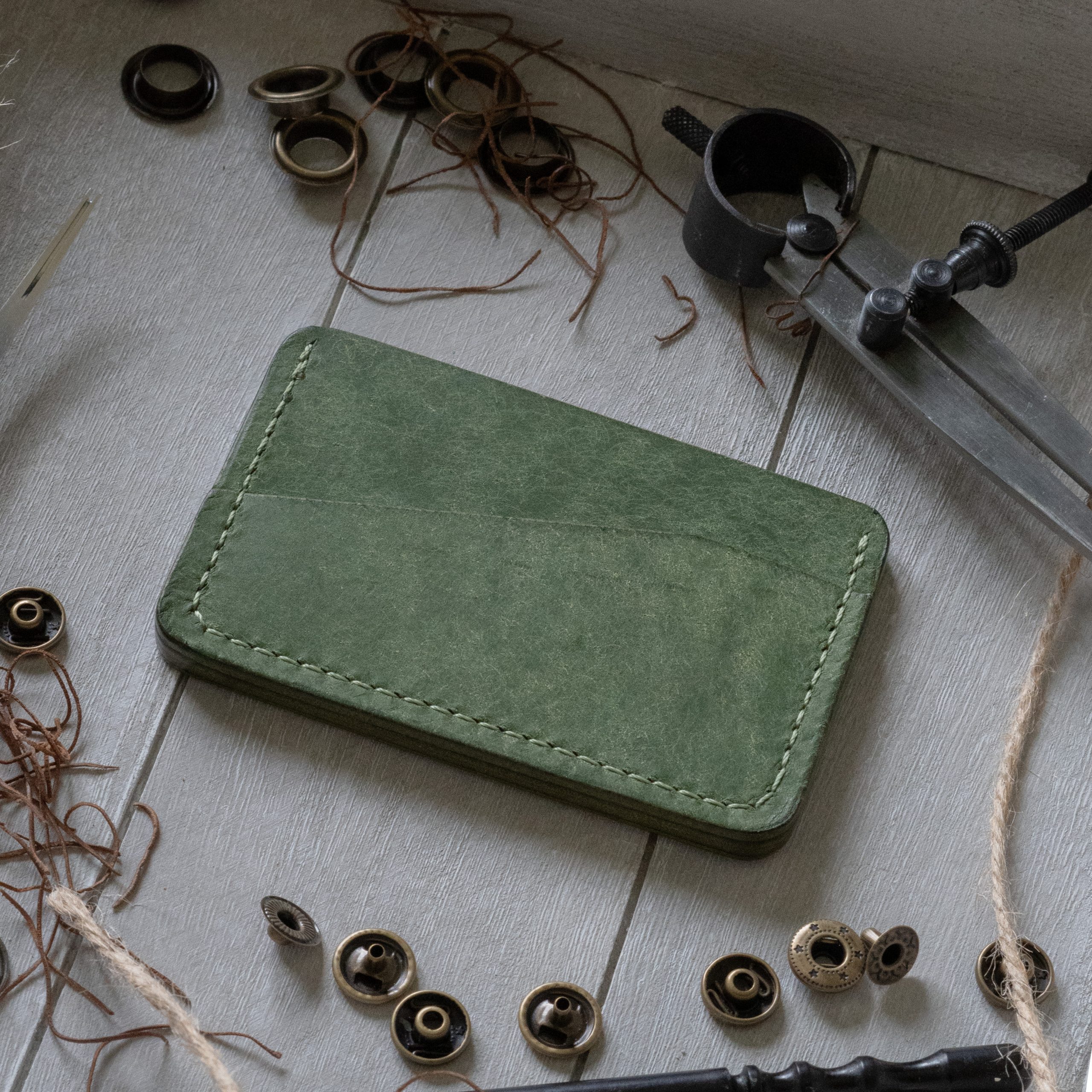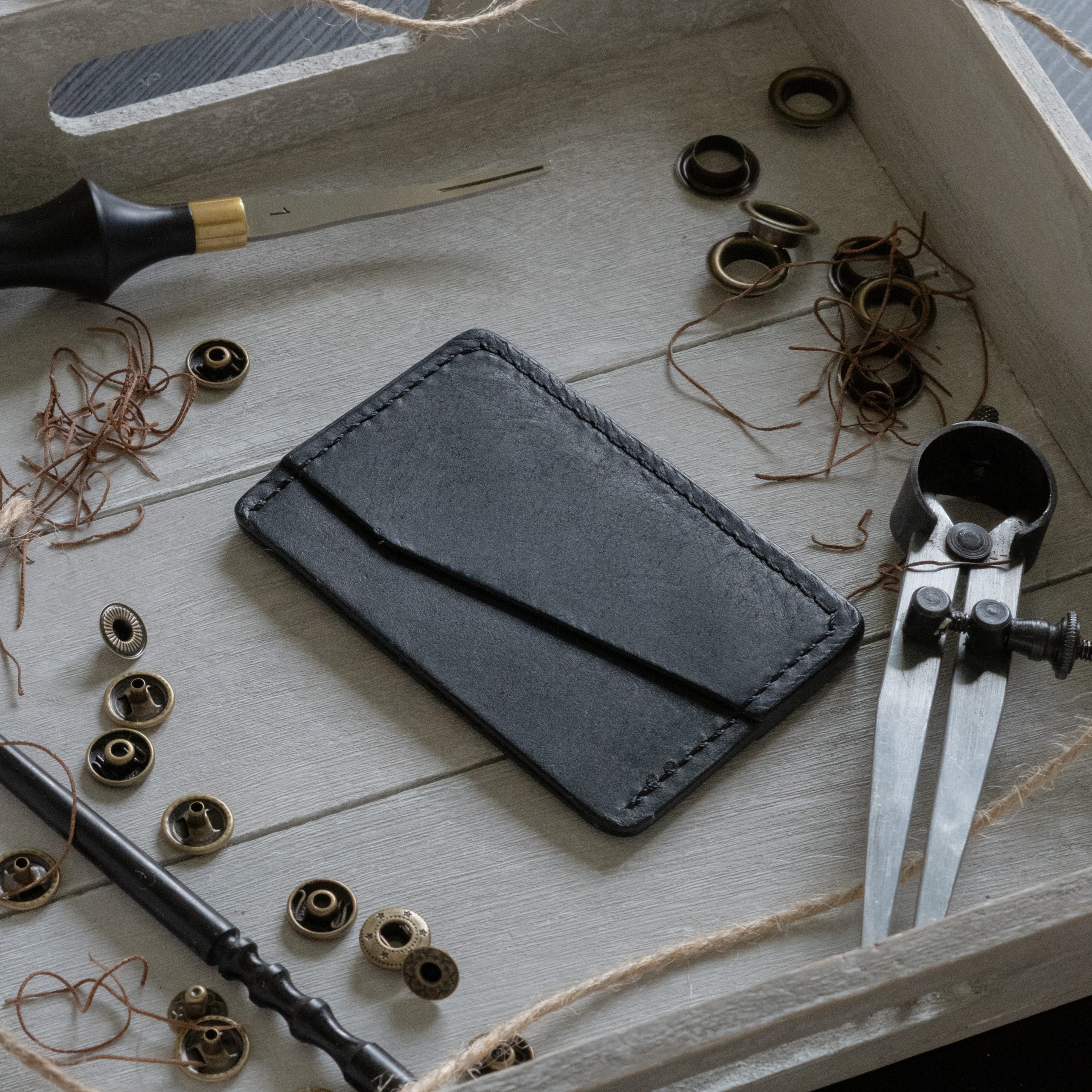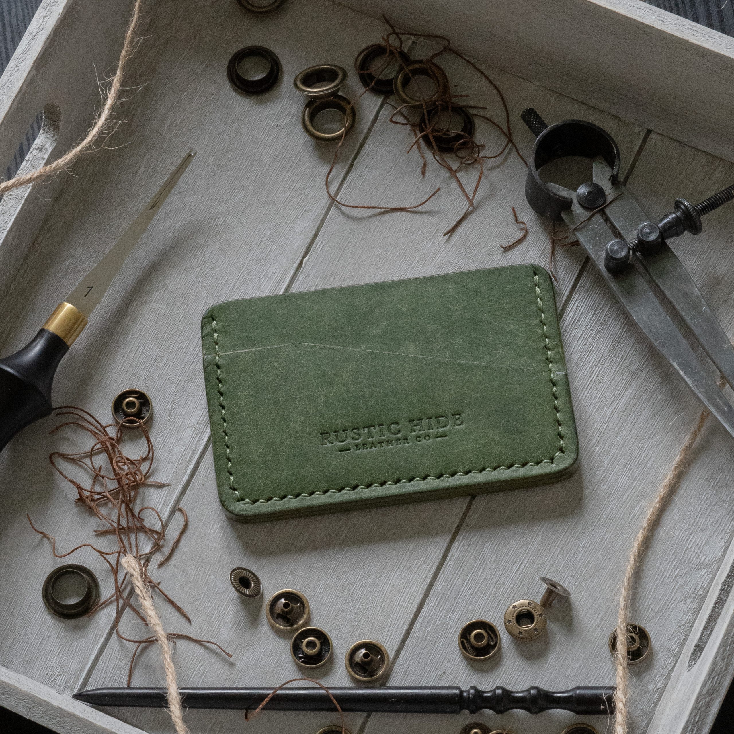 A minimalist card wallet made using full grain vegetable tanned pueblo leather. Handcrafted using premium tools and intricately detailed methods, this product is built to stand the test of time.