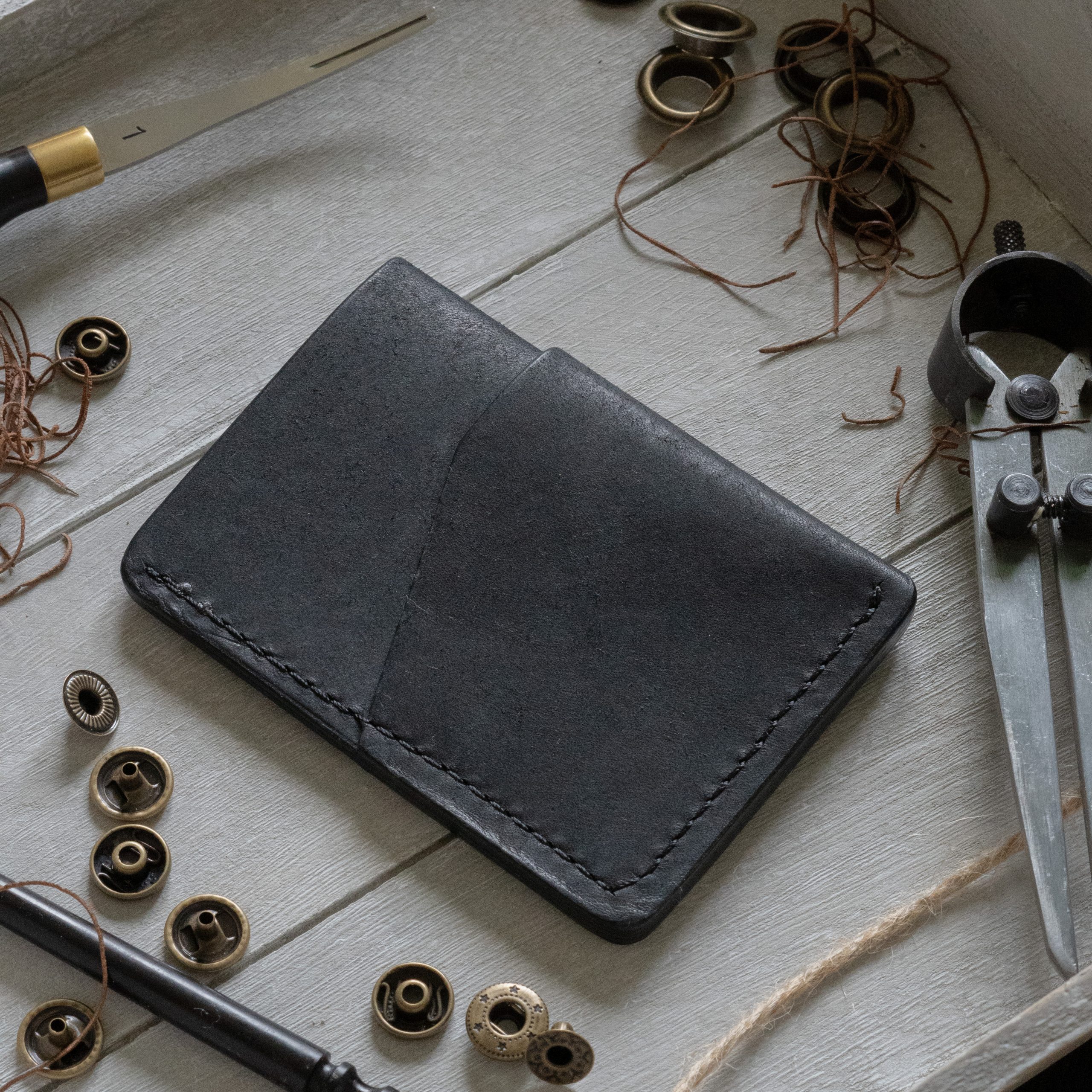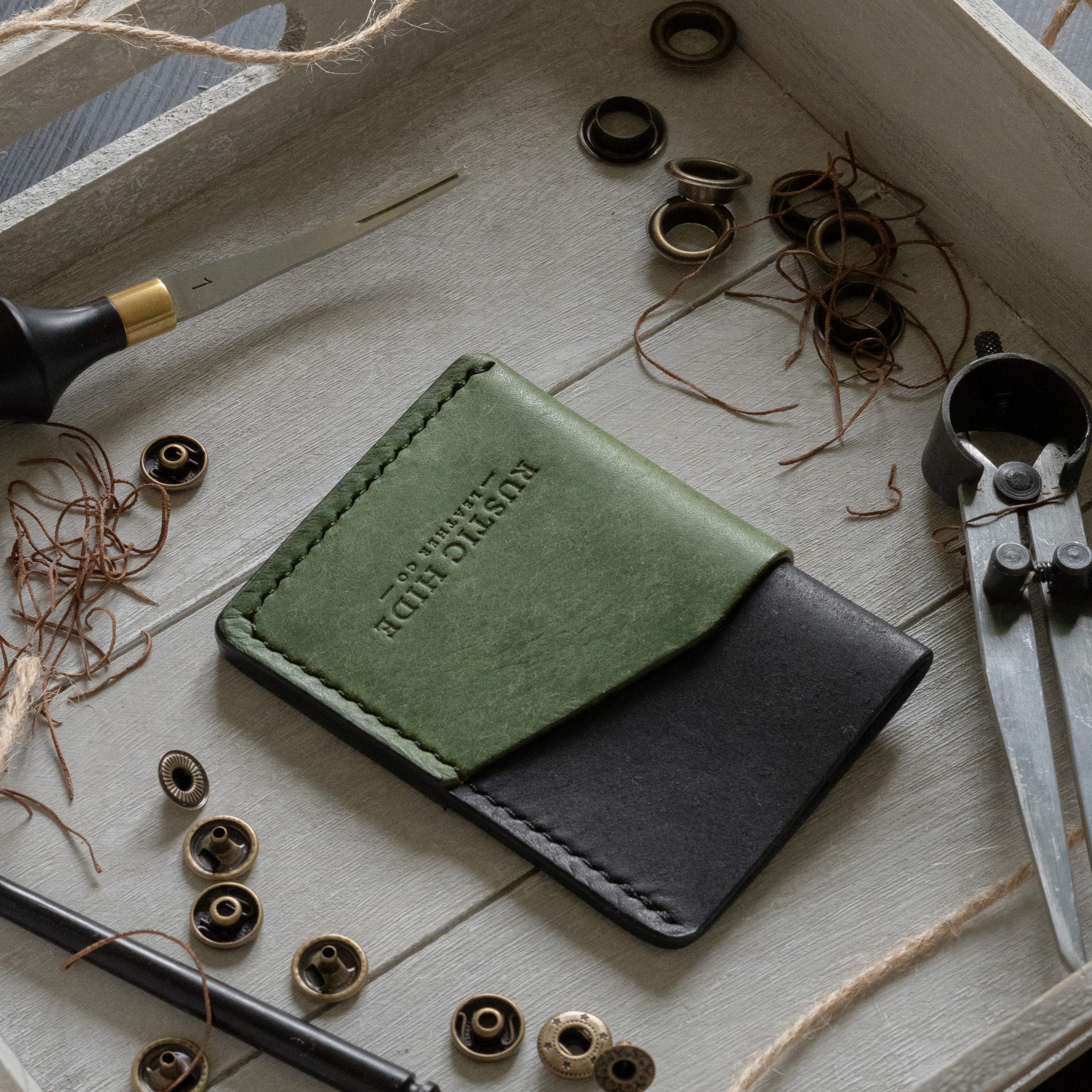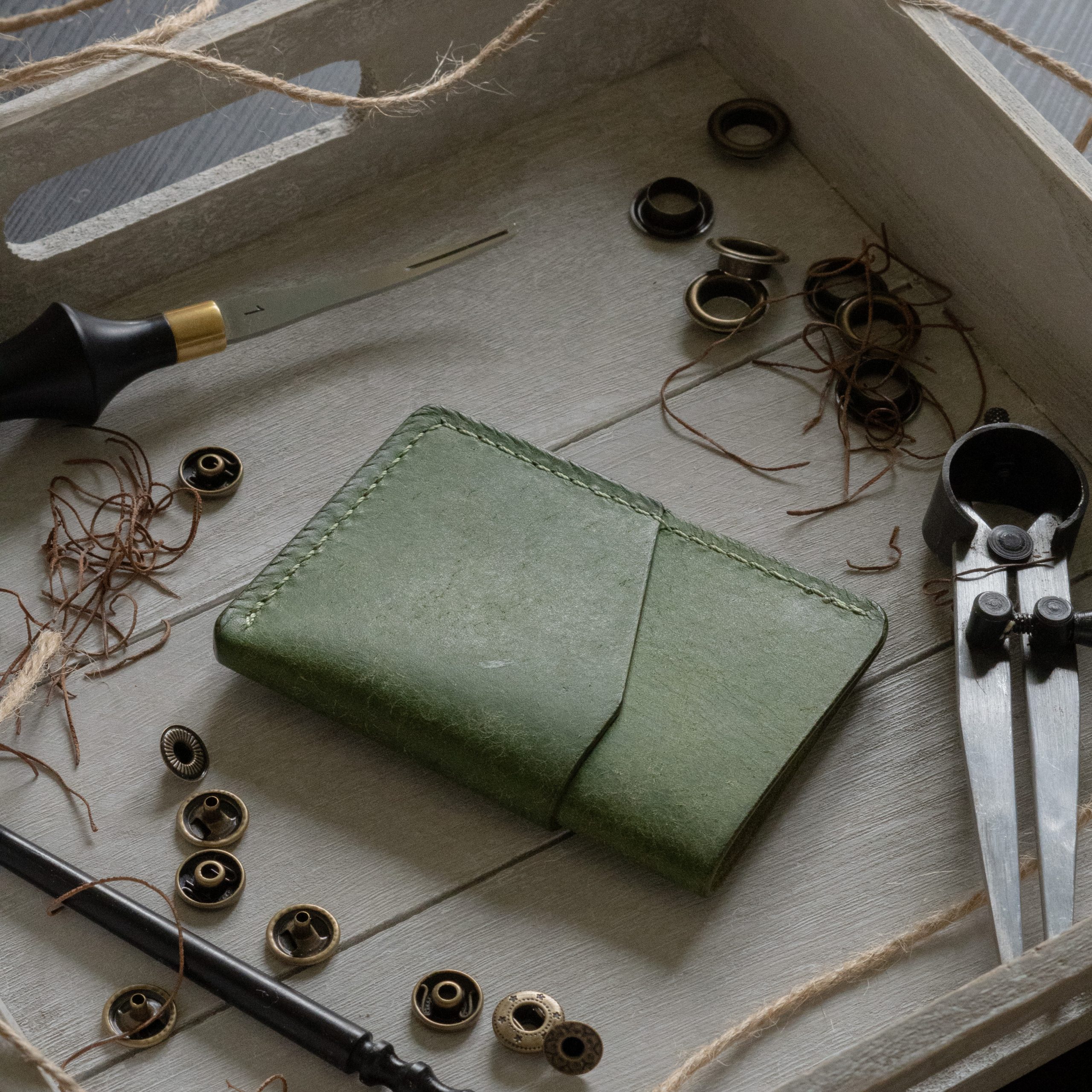 A minimalist card wallet made using full grain vegetable tanned pueblo leather. Handcrafted using premium tools and intricately detailed methods, this product is built to stand the test of time.