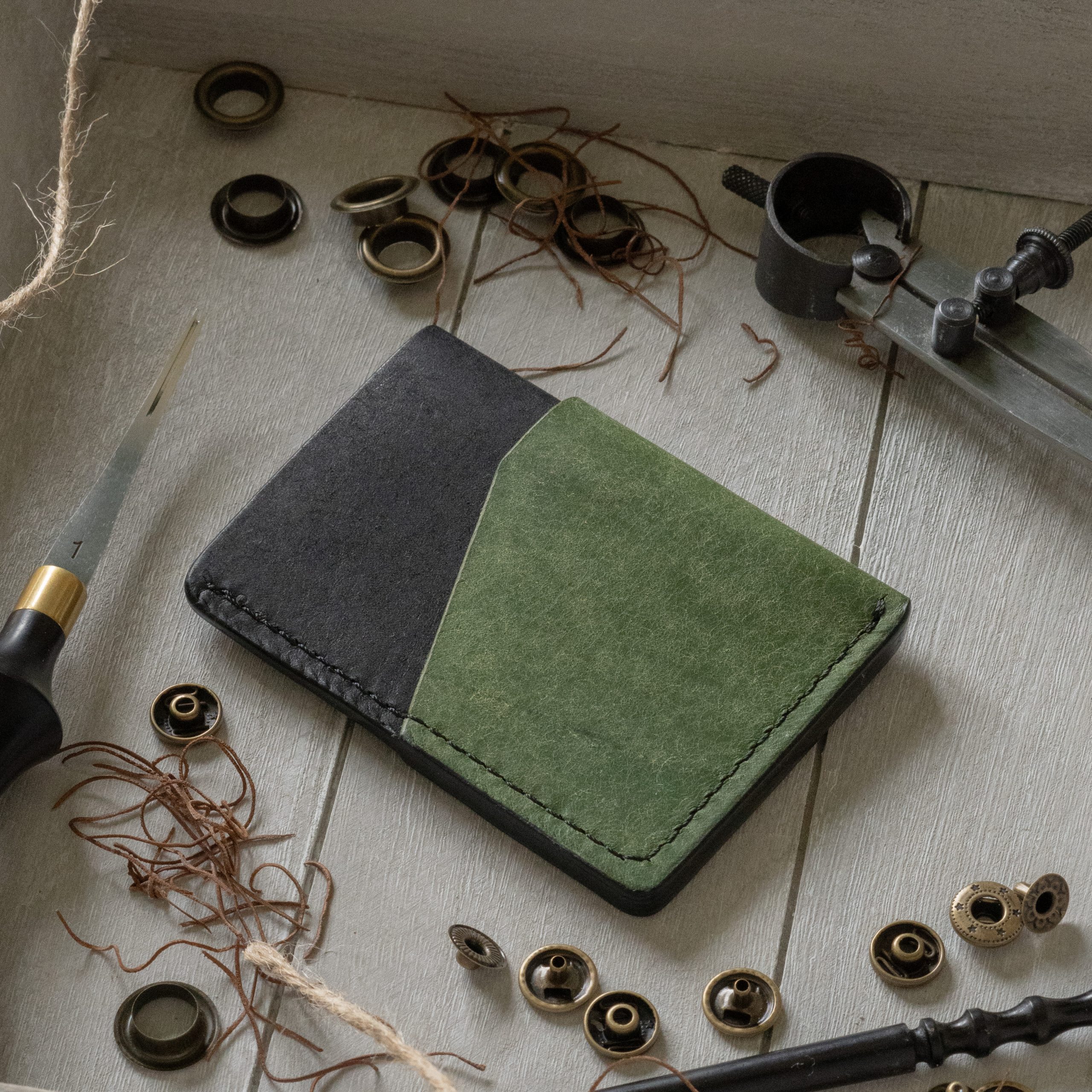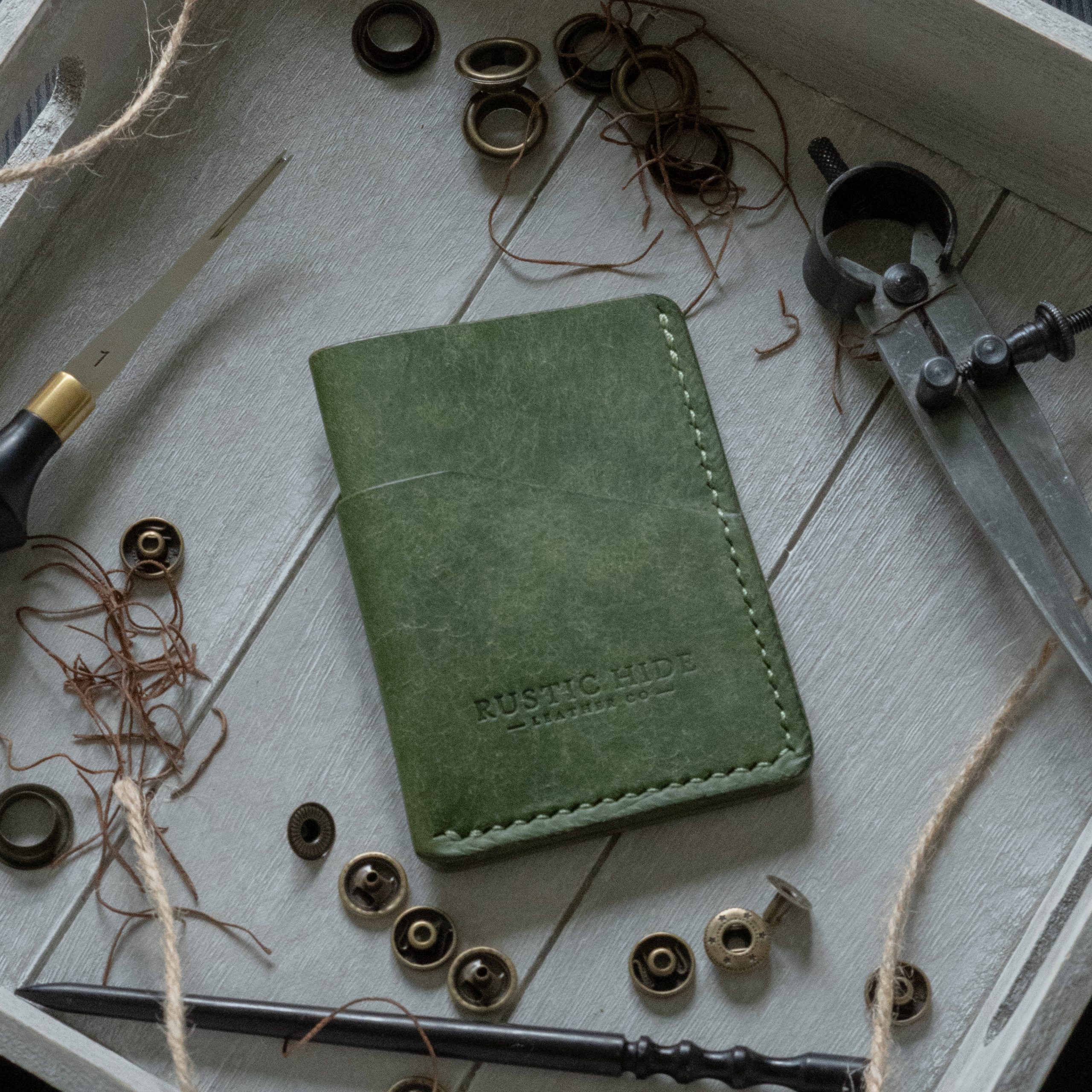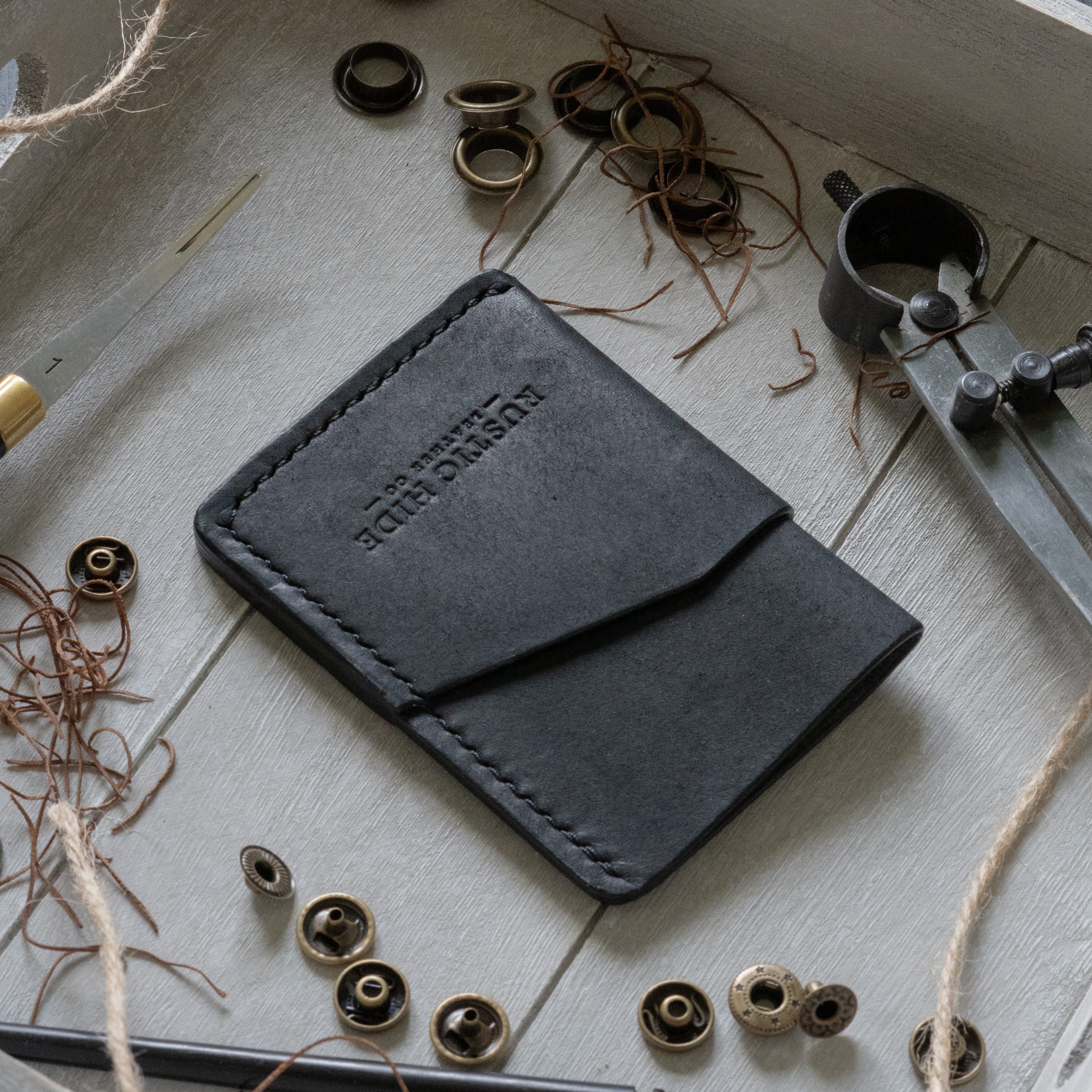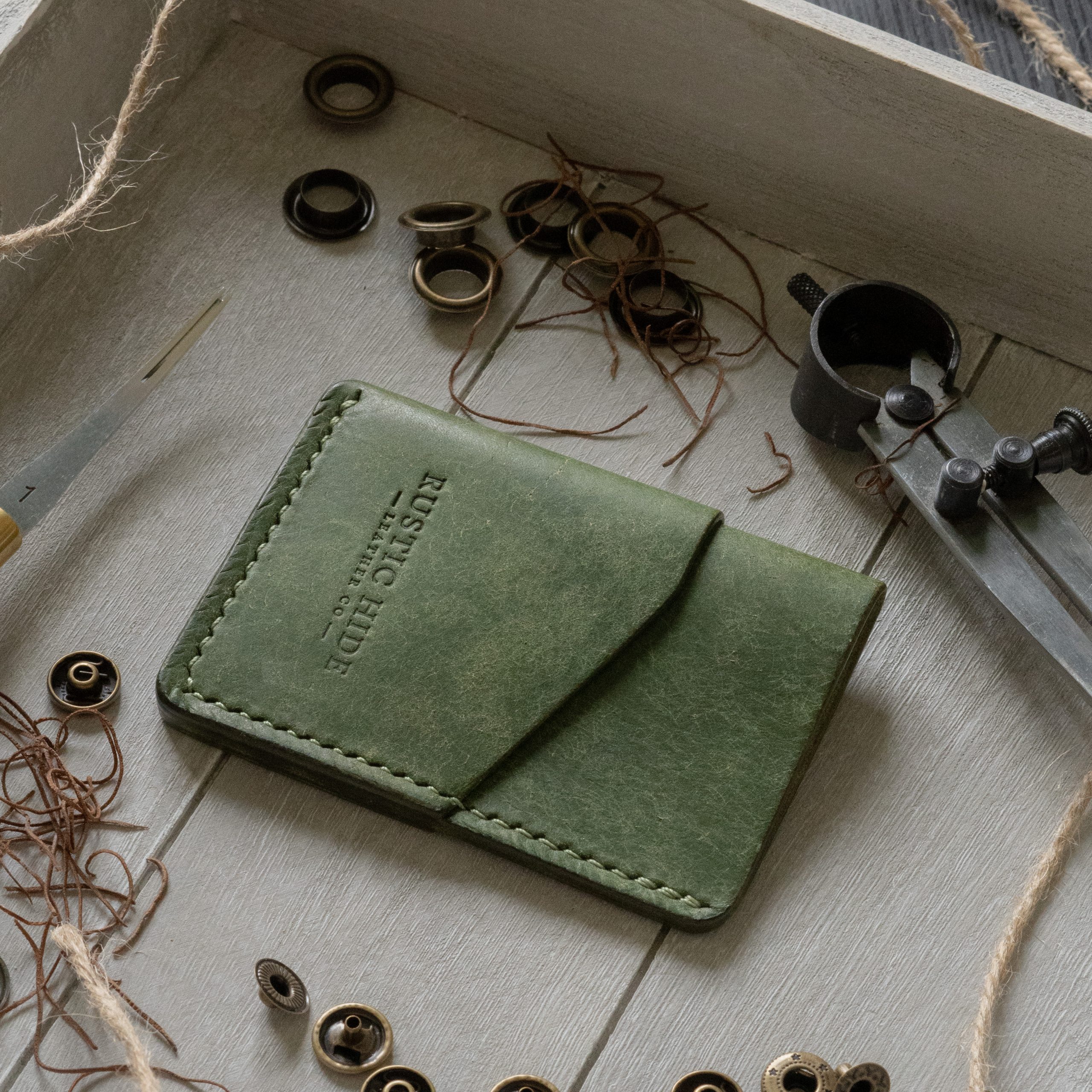 A minimalist card wallet made using full grain vegetable tanned pueblo leather. Handcrafted using premium tools and intricately detailed methods, this product is built to stand the test of time.