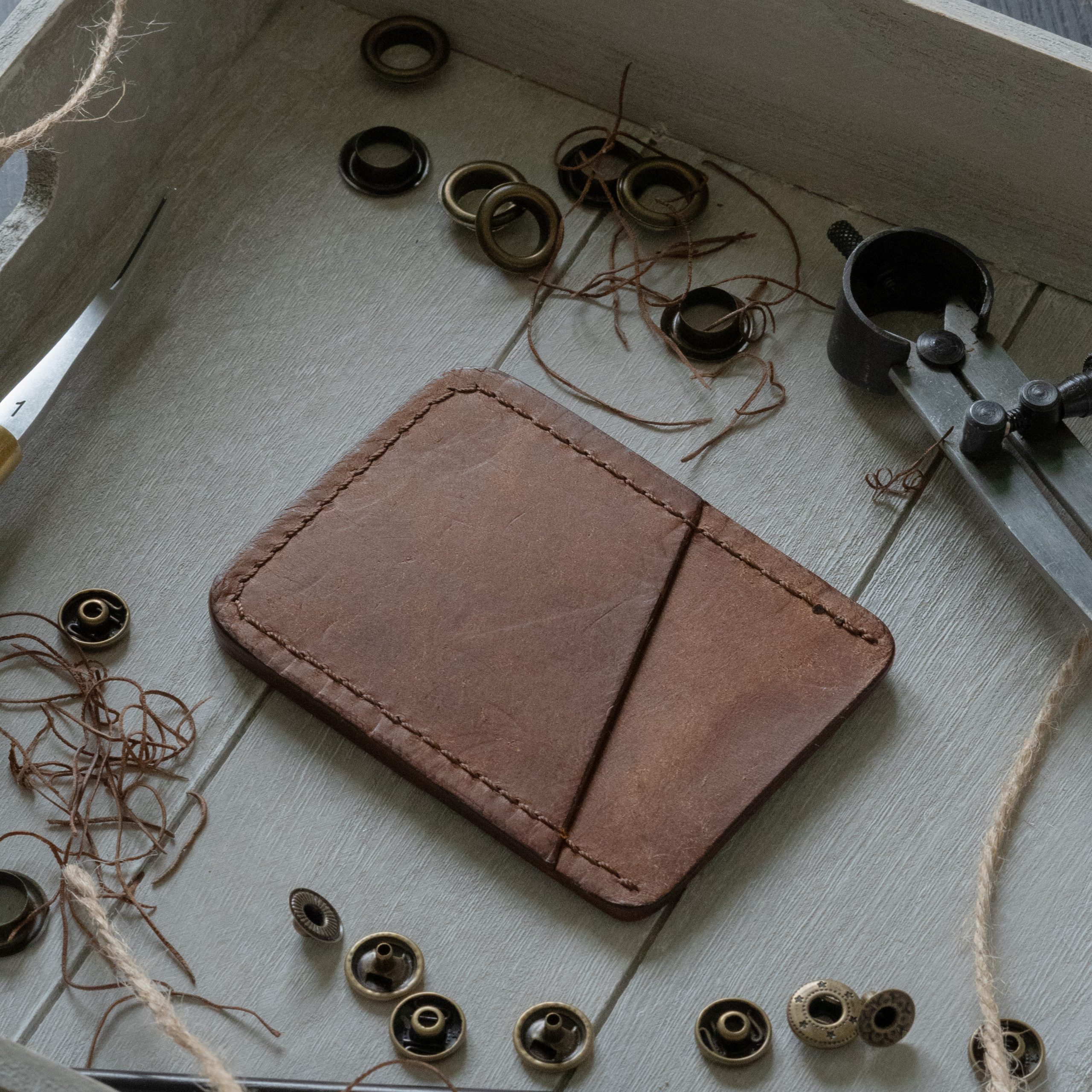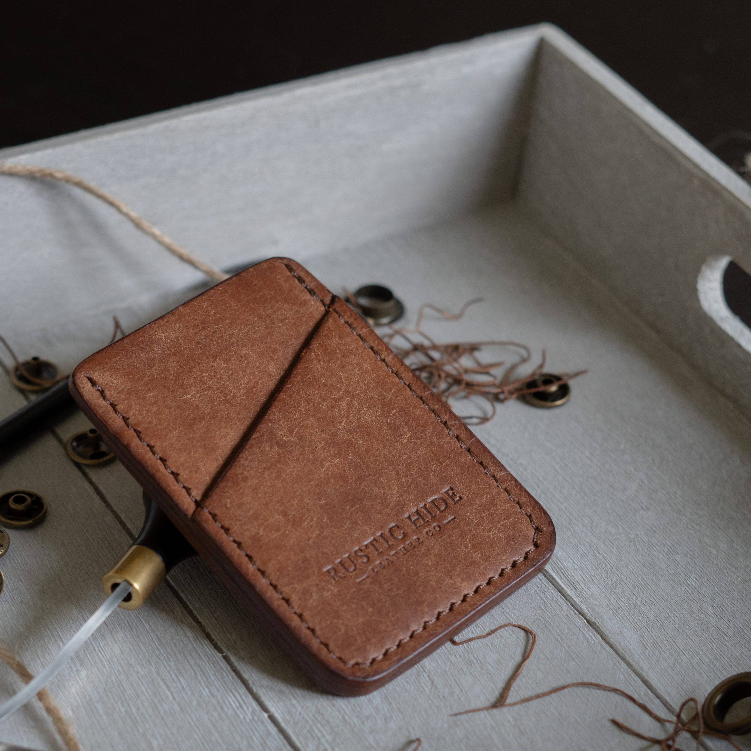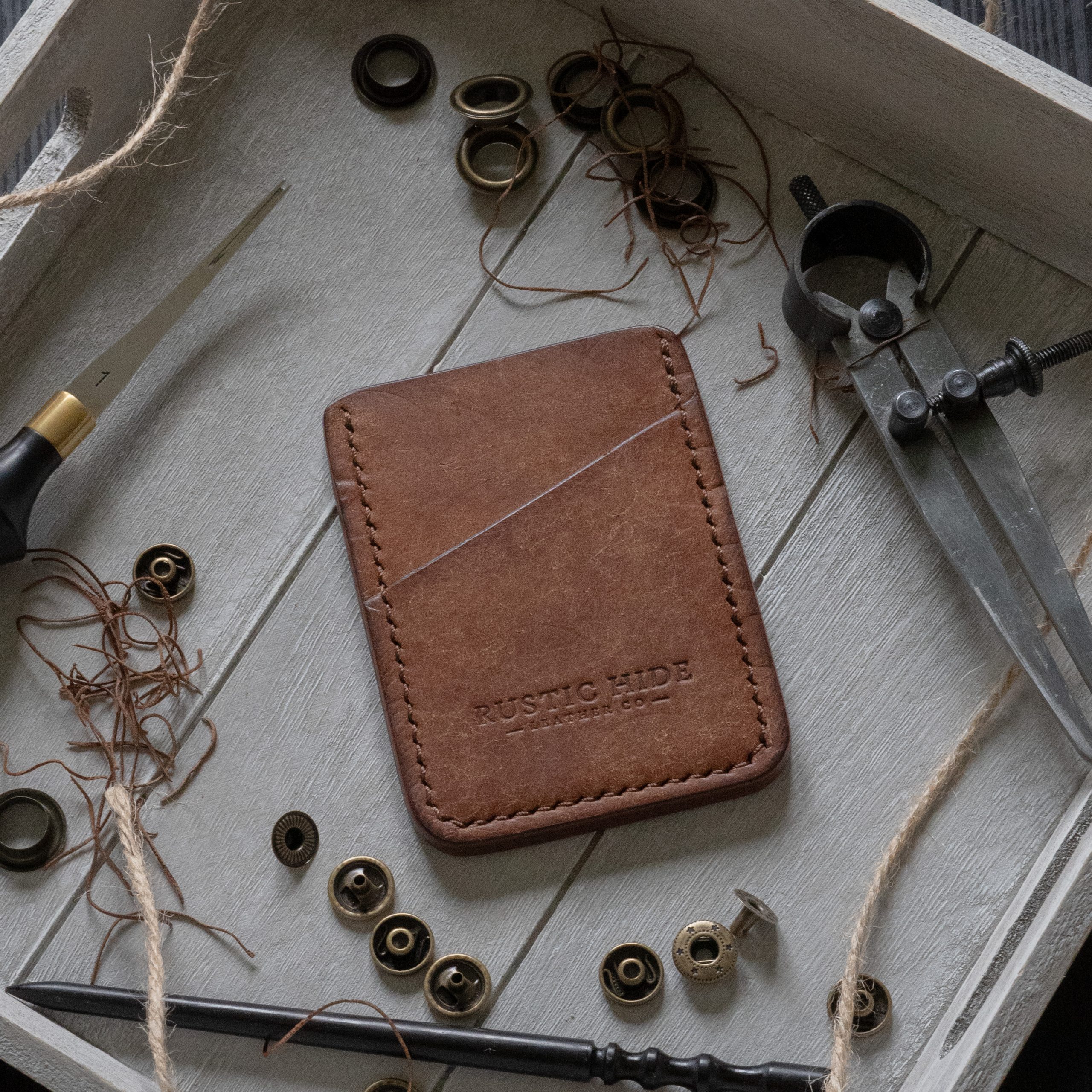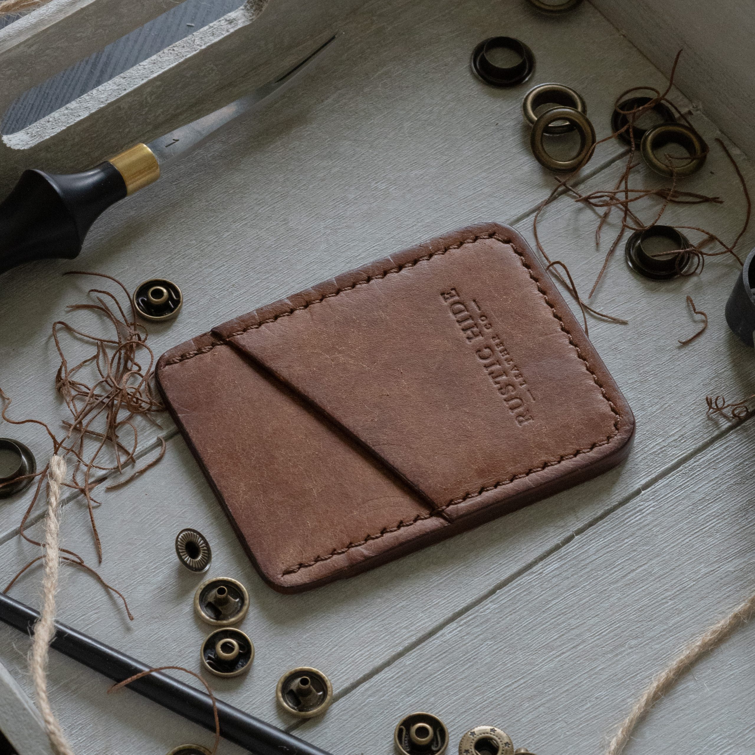 A minimalist card wallet made using full grain vegetable tanned pueblo leather. Handcrafted using premium tools and intricately detailed methods, this product is built to stand the test of time.